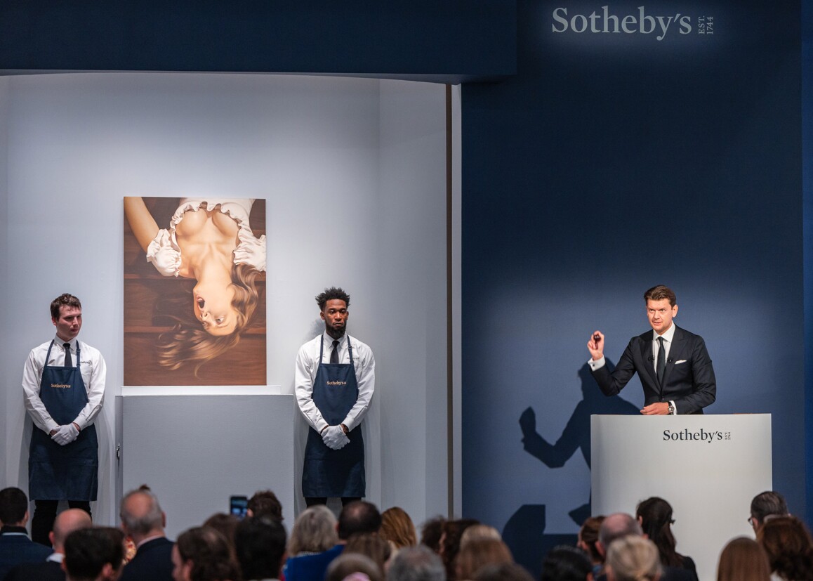 From the very first lot (Anna Weyant’s Falling Woman), the energetic night was propelled by frenzied bidding in the room, on the phone and online, all expertly presided over by auctioneer Michael Macaulay. The first six lots all broke — in some cases, shattered — existing auction records.