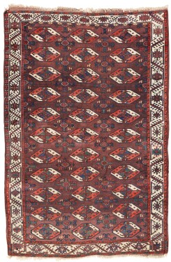 This sale includes Turkman weavings dated to the 17th and 18th century, as well as the more usual 19th-century examples; amongst these are a rare and important Eagle-Gul Group 1 carpet. Tribes represented include the Saryk, the Chador, the Yomut and the Tekke, and several formats in which the weavers displayed their skills, including bags (mafrash and torba), a bridal camel trapping and a good Yomut engsi, (the rug used as a door curtain to the yurt).