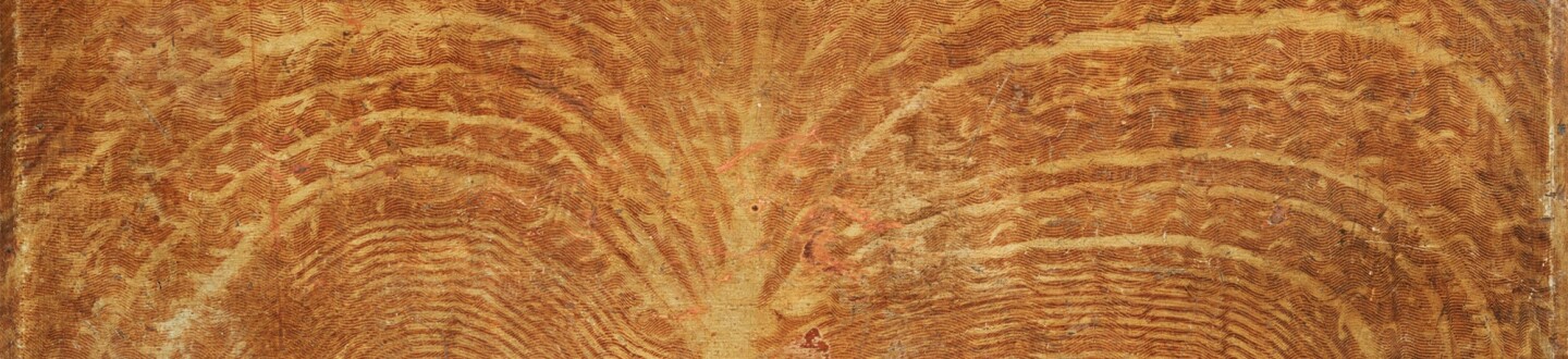This exuberantly decorated chest combines curving lines of comb painting with stylized tree motifs on its lid, front, and sides.