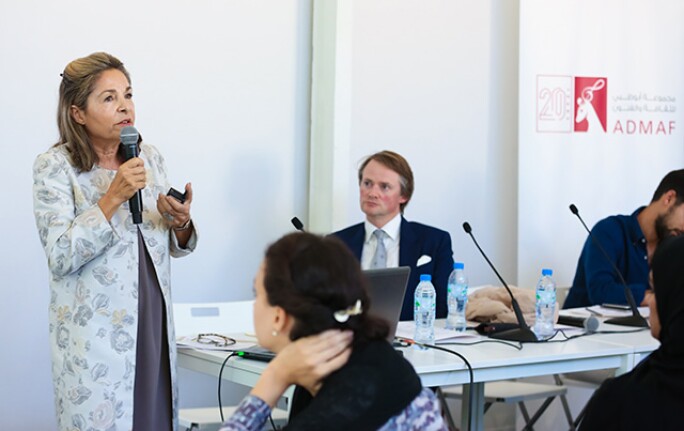 ROXANE ZAND SPEAKS AT THE ART WORLD – AN INSIDE VIEW EVENT WHILE SOTHEBY’S EDWARD GIBBS LOOKS ON