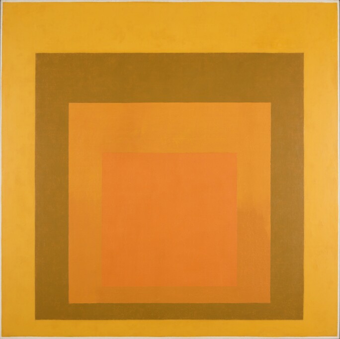 Josef Albers, Homage to the Square: Amber Setting, 1959. Oil on masonite, 48 x 48 in. (121.9 x 121.9 cm.). Juan Carlos Maldonado Art Collection, Miami