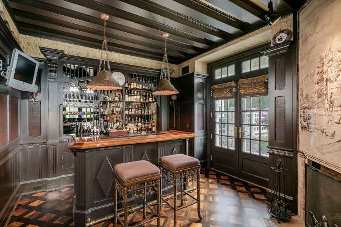Beechwood is a 30,000 sq ft residence set on 15 acres of private land in the secure hamlet of New Vernon, with features including a carriage apartment and pool house. Designed by WESketch Architecture, its classic “butterfly plan” provides elements of constant discovery for the observer and ensures the remarkable size remains a surprise for visitors as they make their way through it. Spaces include an oval-shaped great room, three-room wine grotto and an English pub on the main level, the inspiration for which derived from two copper pendants picked up on a trip in London. Bold selections of Jerusalem limestone floors, Roman-brick ceilings, cashmere wall coverings and 13 imported fireplaces from Italy and Portugal, selected by designer Frank Delle Donne, are carefully woven throughout to portray quiet elegance. Located just 35 miles from midtown Manhattan, Beechwood is a work of art created with brick and mortar.