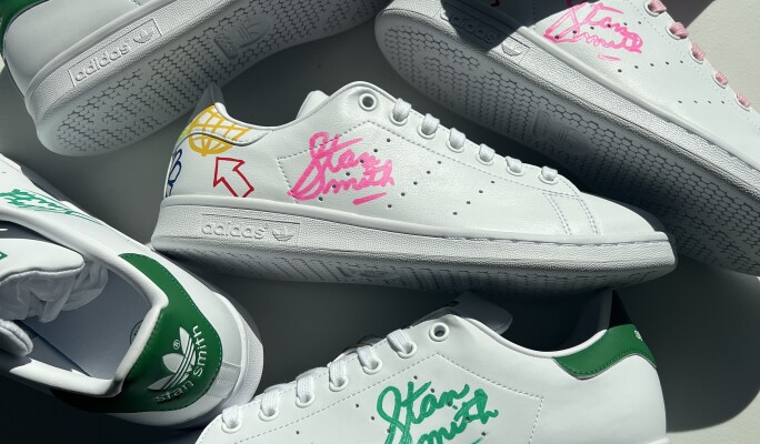 Give the gift of one of the most iconic sneaker silhouettes, the adidas Stan Smith, signed by its namesake athlete. With four Davis Cups and a Wimbledon win under his belt by 1972, Stan Smith was ranked the number one singles player in the world; the following year, his partnership with adidas kicked off. While Smith retired from competitive tennis in the mid-’80s, his influence on pop culture was only growing. Since then, the Stan Smith adidas has garnered a cult following as the ultimate “performance-turned-lifestyle” sneaker on the market. Featuring a white leather upper with Halo Ivory accents and a multicolor doodle design at the heel and ankle, these adidas Stan Smith women’s sneakers are signed by the tennis champ in pink marker on each lateral side.