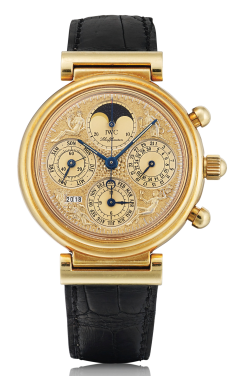 The timepiece features a midnight blue dial and is housed in a case made of 18-carat 5N gold. It's powered by the IWC-manufactured 51111-calibre movement. Within no time at all, the spring-mounted rotor and Pellaton pawl-winding system build up a power reserve of seven days.