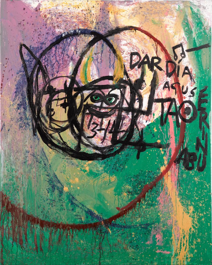 Anyone familiar with the rollicking, stomping music MacGowan made with the seminal Irish punks The Pogues during the 1980s and 1990s would no doubt agree. Today, despite his wild hell-raising days being far behind him, Celtic mercury still surges through MacGowan’s veins, in his art, his writing and ideas. Despite being largely housebound in Dublin, he recently collaborated with Jack Coulter on a painting featured as part of the latter’s new selling exhibition at Sotheby’s this month. Here, in an exclusive conversation for Sotheby’s, with his partner Victoria Clarke, Shane gives us a sense of what was in his mind when he collaborated with Jack on If I Should Fall From Grace With God, the artwork named after the title track of The Pogues’ 1988 gold-certified album.