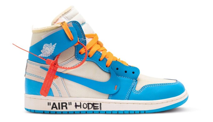 Inspired by Michael Jordan’s alma mater, the University of North Carolina, the Nike Air Jordan 1 x OFF-WHITE Retro High OG ‘UNC’ features the Tar Heels’ signature blue and white colors. “OFF-WHITE for Nike” style is printed on the inner sidewalls, with Virgil Abloh’s signature writing “SHOELACES” and “AIR” on the shoelaces and midsole.