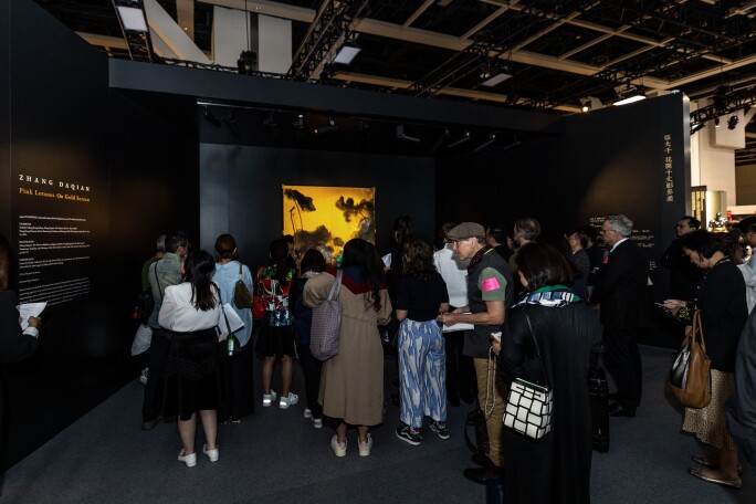 Zhang Daqian's two-panel splashed ink and colour on gold paper, Pink Lotuses on Gold Screen (1973) was sold for HK$250 million, securing the third-highest auction price for a work by Zhang Daqian.