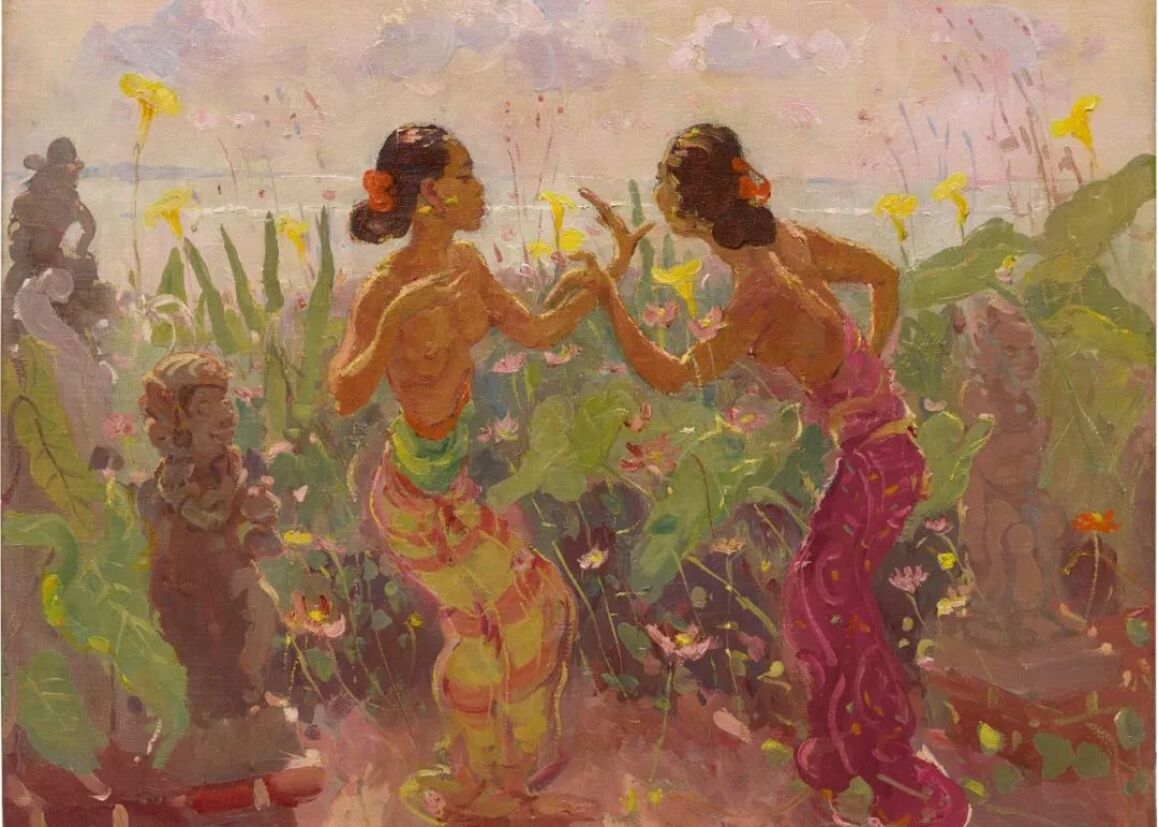 The splendour and symbolism of Southeast Asian culture was a captivating subject for Western painters visiting Indonesia in the mid-20th century. Graceful Balinese dancers, adorned with decoration were one of the quintessential subjects of the Belgian painter Adrien Jean Le Mayeur de Merprès, whose muse (and later wife) was the legong dancer Ni Pollok.