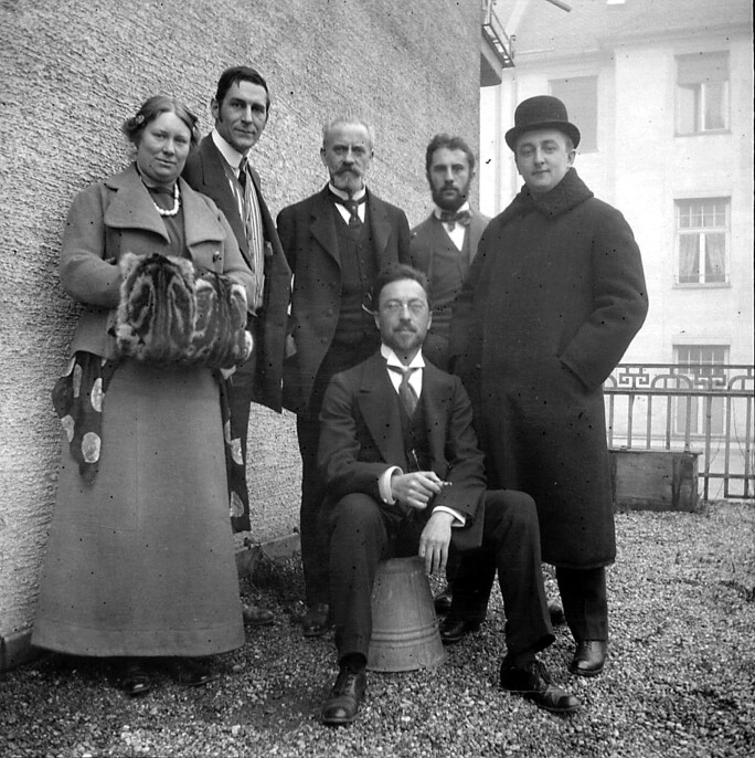 Friends of the Blue Rider on the balcony of Münter’s and Kandinsky’s apartment in Ainmillerstrasse, 36, Munich. 1911 © Fine Art Images/Heritage Images Alamy Stock Photo - Paris