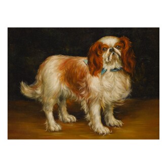F rom “Cave Canem”, the mosaic at the entrance to the House of the Tragic Poet in Pompeii created in the 1st Century AD, to Pieter Breughel’s frosty Hunters in the Snow with their large pack of hunting dogs, to Thomas Gainsborough’s frothy portraits of British aristocracy and their dogs, man’s best friend has appeared again and again throughout the history of art. In England, Europe, Asia and eventually America, the dog’s role as a protector, working herder or retriever, pet, loyal companion and symbol of unconditional love was celebrated and immortalized through their inclusion in works of art, both painted and sculpted. By the 19th Century, inspired by Queen Victoria’s love of animals - and her patronage of animal artists such as John Frederick Herring Snr. And Sir Edwin Landseer - Victorian collectors went mad for dog portraiture. Buatta’s collection of dog paintings – and especially Cavalier King Charles Spaniels – carried on the proud tradition of charming and comical depictions of dogs while introducing clients and collectors alike to the charms of dogs in art.