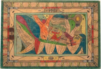 Born in Bern, Switzerland on February 29, 1864, Adolf Wölfli endured a traumatic youth: abused, orphaned, moved between a series of state-run foster homes, and contracted out to the lowest bidder as a child laborer. He briefly joined the army before twice being convicted of attempted molestation and admitted to the Waldau Insane Asylum, where he would spend the remainder of his days. Some years after his commitment he began to draw, encouraged in this new pursuit by his psychiatrist Walter Morgenthaler, who later published Ein Geisteskranker als Künstler (A Psychiatric Patient as Artist). Morgenthaler’s writing brought Wölfli's work to the attention of the outside world, including André Breton, Surrealism's chief theorist, and Jean Dubuffet, the founder of the Art Brut movement within which Wölfli's idiosyncratic creations would later be situated. Wölfli's magnum opus was a semi-autobiographical saga, which he profusely illustrated with complexly involuted drawings that incorporated intricate figuration, geometric patterns and passages of text and musical notation. This 25,000-page work, which has been compared to later Outsider artist Henry Darger's colossal illustrated manuscript In the Realms of the Unreal, occupied Wölfli until his death at Waldau on November 6, 1930.