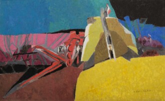 French painter and printmaker Jacques Villon advanced the evolution of Cubism in Paris in the early 20th century. Unlike the reduced palette of the earliest iteration of Cubism, many of Villon’s paintings explore truncated forms and planar shifts through relatively saturated colors, rich chromatic contrasts and figural or landscape compositions. Alongside his brother Raymond Duchamp, he founded the Puteaux Group, Cubist group which included Fernand Léger, Robert Delaunay,and Francis Picabia. Villon contributed to the development of the 1912 Salon de la Section d’Or, a critical exhibition for the rise of Cubism and Orphism.