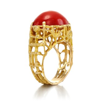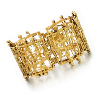 From 1946-47 Basaldella began to explore a more post-cubist language and it was around the same time that Mario Masenza approached him to produce artists Jewellery. Masenza was instrumental in the rise of artists Jewellery in the post-war era in Italy drawing on his personal interest as an avid art collector attracted to the contemporary art of the School of Rome. Initially Basaldella refused the collaboration with Masenza but in 1948 Basaldella exhibited a gold brooch at the Milan Triennale. In total Masenza collaborated with over thirty artists up to the end of the 1970s, using his distinctive gold mix with a warm tonality akin to the gold used by the ancient Etruscans and Romans. The use of gold was unusual in artists Jewellery of the period and contrasts with that of jewels produced in North American artists like by Alexander Calder, Harry Bertoia and Ibram Lassaw where bronze and brass and to a lesser extent silver were employed.
