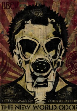 Fairey’s studio, OBEY GIANT, produces prints, stickers and books—all marketed with the tongue-in-cheek slogan: “Manufacturing Quality Dissent Since 1989.” Fairey’s work ranges across mediums, but it is his prints which have garnered the praise to elevate him to the verge of punditry. Art as politics is nothing new, but Fairey’s mass-marketed brand and street-graffiti-come-pop style results in highly coveted and instantly recognizable art.