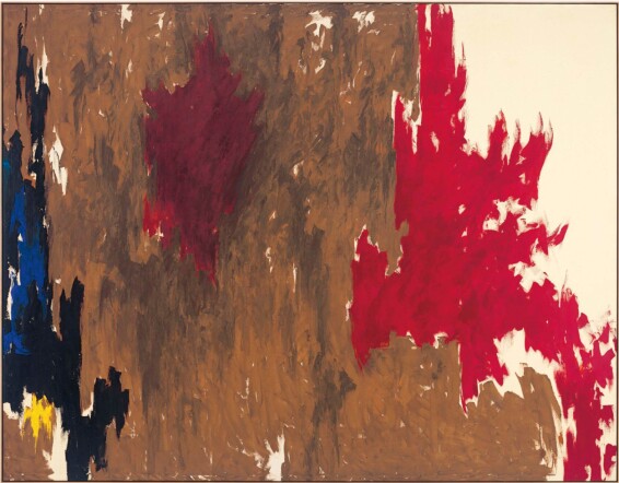 Still’s painterly application was in perfect sync with his foreboding and unusual palette. Edmund Burke had declared ``sad, fuscous colors, as black, or brown, or deep purple’’ to be appropriate to the Sublime, as they connoted the ``majestic strength of our ties to the earth.’’ (Lawrence Alloway, ``Residual Sign Systems in Abstract Expressionism’’, Artforum, November 1973, p. 40) Such somber color ranges were significant in the development of the art of Still, Rothko and Newman, yet each knew the value of expanding their palettes to include not only the `dark’ colors, such as the brown, blacks and dark blue of 1960-F to the `light’ colors of orange, red and yellow. The punctuation of reds and yellows enveloped by the surrounding browns of 1960-F burst forth at the far right into broad flashes of red that flow upward to the top of the canvas as they curve down toward the far right corner, pulling the composition resolutely toward the viewer’s right. By using counterpoints of color that harmonized with the more somber grounds, the artists highlighted the importance of the paradox of light within dark which constitutes radiance as an image of revelation to the Sublime. Still’s awe-inspiring 1960-F, with its signature fusion of form, space and color, sets Still apart from his contemporaries. ``Space in a Still painting is conceived to be infinite in its dimensions, and everything else in the work – every variation of shape and color and texture – serves to reinforce this initial impression of immensity, this sense of a vast, untethered, somewhat unearthly space without fixed boundaries. …This visionary space .. is one of the truly original inventions of modern painting.’’ (Hilton Kramer, `` Art: Clyfford Still Show at the Met’’, The New York Times, November 16, 1979).
