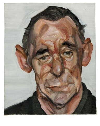 The product of much soul-searching on the part of both painter and sitter, Freud gathers into this portrait a powerful psychological penetration that is intensified by the intimate scale of the work. Deakin’s character is stripped-bare; he is as “naked” as are the sitters in Freud’s vast nudes. This meditative painting epitomises Freud’s stated task as an artist: to make the viewer feel slightly uncomfortable and yet hold our gaze by involuntary chemistry.