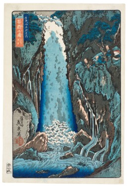 W e are delighted to announce the sale of Fine Japanese Woodblock Prints, with works by Utagawa Hiroshige, Utagawa Kuniyoshi, Tsukioka Yoshitoshi and Kawase Hasui. The sale begins with a selection of elegant bijin-ga [prints of beauties] by Katsukawa Shuncho, Eishosai Choki and Chobunsai Eishi, including the latter’s graceful rendering of Hanaogi of the Ogiya. These are followed by two private collections consisting of examples by Katsushika Hokusai, counting impressions of Yoshida on the Tokaido and Mishima Pass in Kai Province, and a large group of prints by Hiroshige, including his exquisite Black-Naped Oriole on a Stem of Rose Mallow. The sale continues with a selection of dramatic and vibrant depictions by Kuniyoshi, such as his triptych of the Ghosts of the Taira Attack Yoshitsune in Daimotsu Bay, and Yoshitoshi, including the New Forms of the Thirty-six Ghosts. These are accompanied by a group of 20th-century prints of graceful and mesmerising Beauties by Torii Kotondo and Ito Shinsui. The sale culminates in an extensive group of works by Kawase Hasui, counting a few impressions of atmospheric winter scenes.