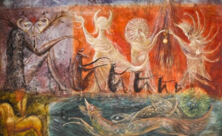Kahlo’s Diego y yo is one of the artist’s last and most important self-portraits and features the iconic imagery for which she is best remembered. From the same year as Kahlo’s portrait, Alexander Calder’s monumental Untitled of 1949 is a magnificent early example of the artist’s defining hanging mobiles, the bold forms, simple shapes and delicate suspension of which speak to Modernism and Surrealism, while the movement and play of light and shadow both hint back to Impressionism and look forward to Abstraction.