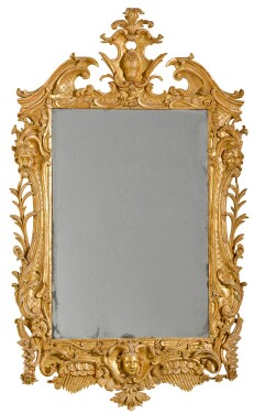 A George II carved giltwood overmantel mirrorThe impact of Parisian design on the rest of Europe cannot be overstated in the 18th century. This English overmantel – conceived to hang above a chimneypiece - is a testament to that, incorporating C-scrolls and other ubiquitous rococo motifs and mounted with bracket supports for displaying blue and white Chinese porcelain.