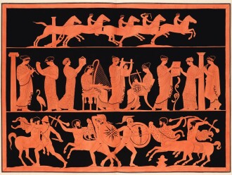 This sale offers extraordinary colour plate books. Each tell a story about Greek culture and history in the most picturesque fashion. Depicted are episodes from the Greek War of Independence, Etruscan vases, and costume.