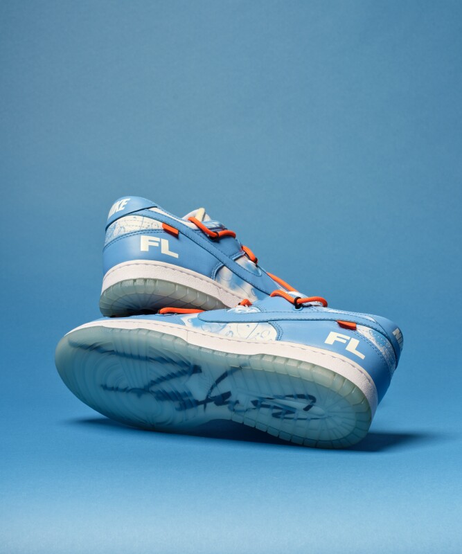 S otheby's is proud to present a special global online auction of the Nike Dunk Low ‘Virgil Abloh™ x Futura Laboratories’ designed by Virgil Abloh and the artist Futura. A total of eight pairs are being made available publicly for auction in two colorways. Proceeds of this auction shall be donated to support the work of the Virgil Abloh Foundation, the philanthropic arm of Virgil Abloh Securities, the creative company which upholds the far-reaching practice, teachings, and ethos of the late creative visionary, Virgil Abloh. Launching later this year, the Foundation will continue the Abloh Family's work to increase access and opportunities for diverse youth interested in pursuing creative careers. In addition, the Virgil Abloh Foundation has committed to donating half its proceeds to Futura's choice of charities with profound community impact. They are the Art for Justice Fund, the Boys & Girls Club of America, and the Innocence Project.