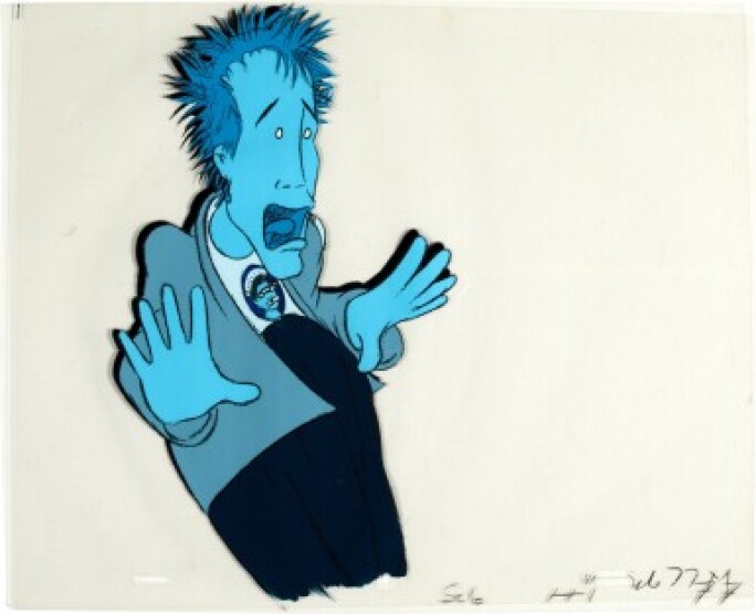 In the first press release produced for the band in 1976, McLaren stated that the Sex Pistols’ ‘spontaneity and honesty threatens all the highly packaged pop of the past’. The band’s authentic voice was a huge aspect of its success. Two years later John Lydon refused to take an active part in the film the Great Rock n Roll Swindle, as a result McLaren decided to construct a small number of animated sequences to aid in the reconstruction of the story of the Sex Pistols (lot nos. 59-65). Apart from short sequences of concert footage Johnny Rotten only appears in the film as an animated cartoon character.