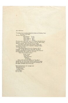 Early PromotionMalcolm McLaren | Press release for the Sex Pistols, c. April 1976.