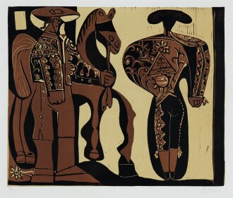 Picasso’s earliest surviving painting is a small portrait of a picador on a horse, made when he had just turned eight. His Spanish heritage – and specifically the cultural institution of bull-fighting – would continue to inform his production throughout his life. He identified with the bull-fighter, recognising their shared spaces of performance, creativity and courage. However, he would frequently infuse the combat of the bullfighting arena with mythological elements, elevating it into a world saturated with heroism and fantasy. Picasso once commented: "If all the ways I have been along were marked on a map and joined up with a line, it might represent a Minotaur."