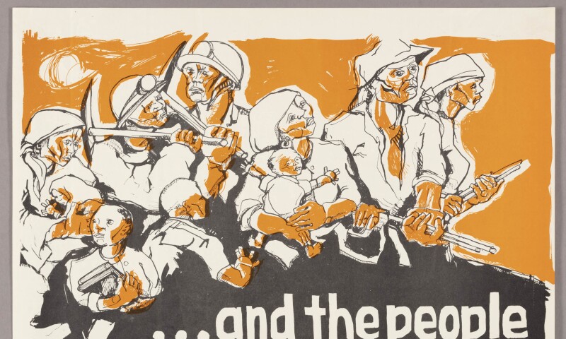 The People Shall Govern! is the first-ever exhibition on Medu in North America. Featured among its 130 objects are more than 60 posters by members of the ensemble and related makers, all recently acquired by the Art Institute of Chicago. Collaboratively executed and often printed in the hundreds, Medu’s offset lithograph and screen-printed posters combine sobering and revolutionary imagery with bold slogans that, in word and image, mobilized citizens to support causes in social and economic justice and encouraged pan-African solidarity.