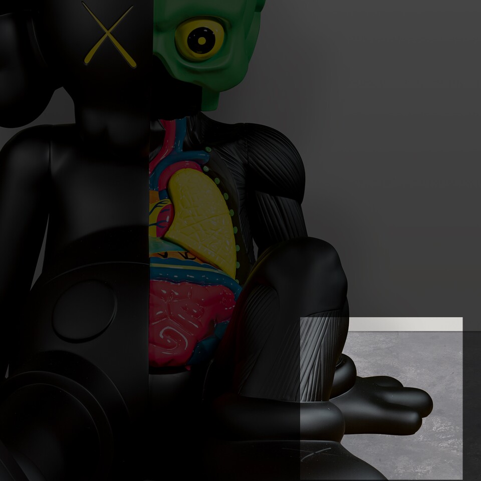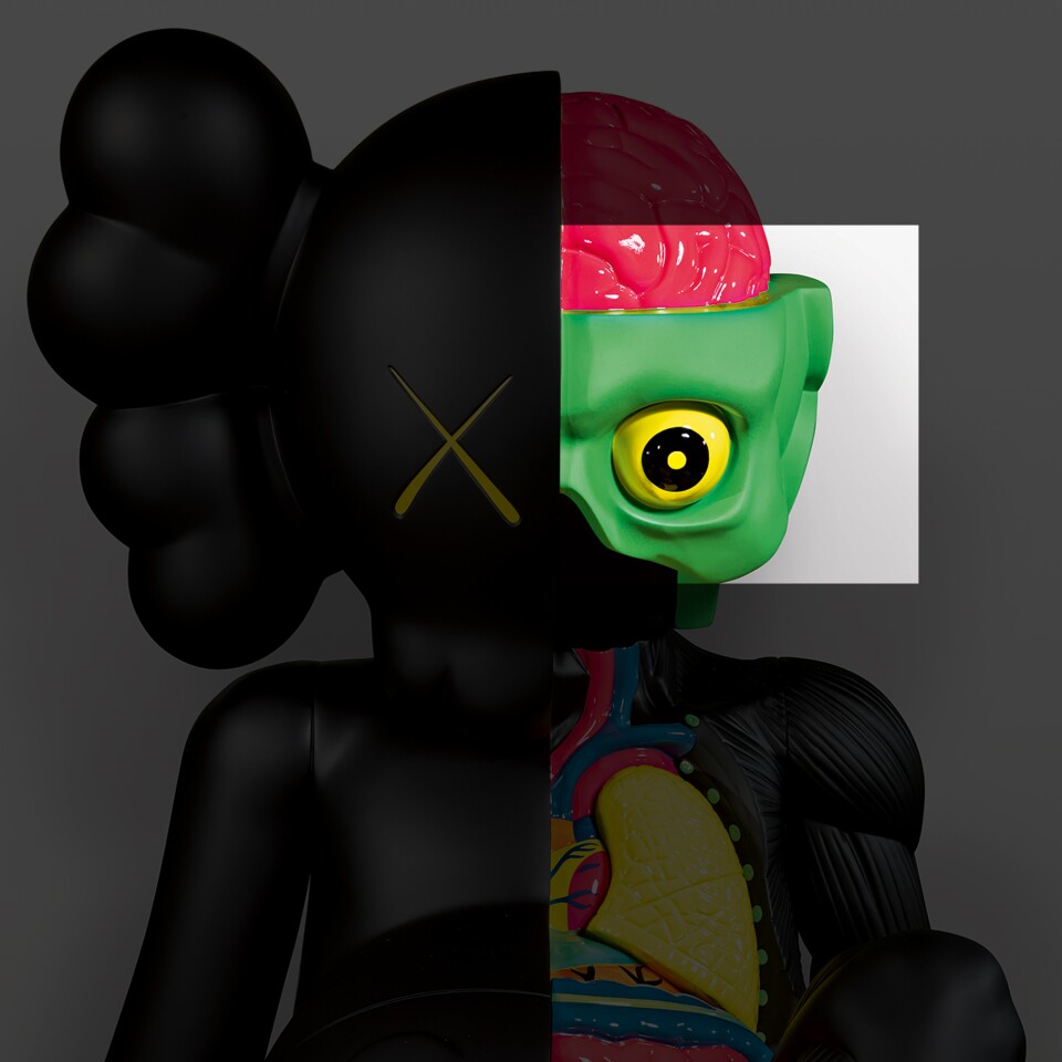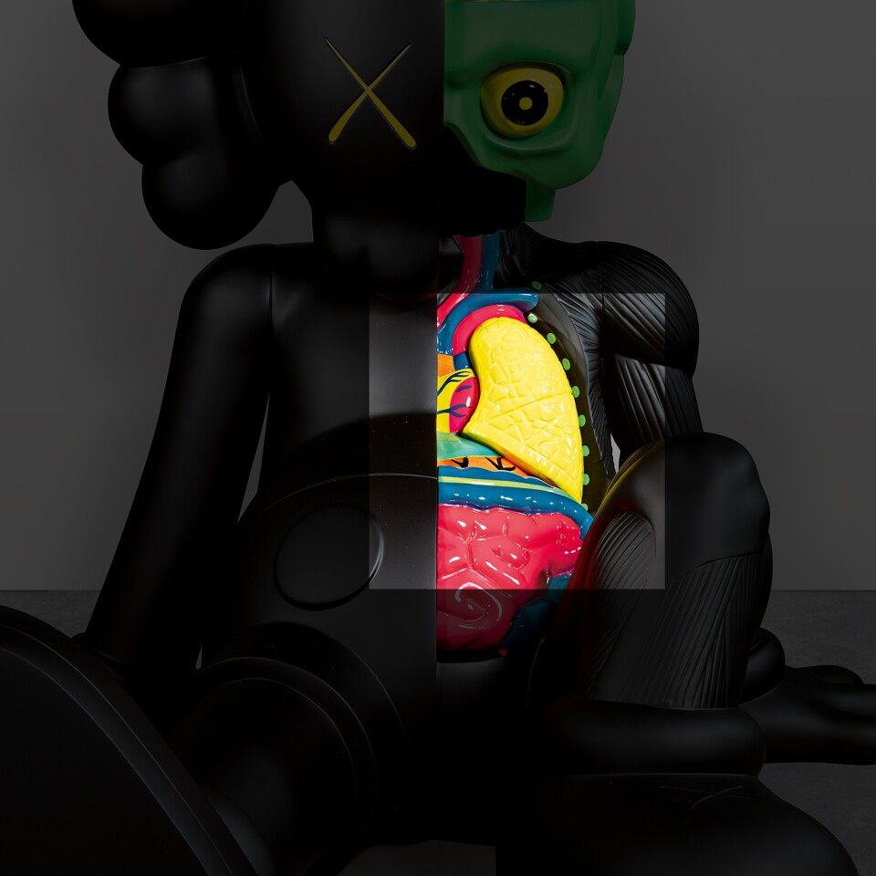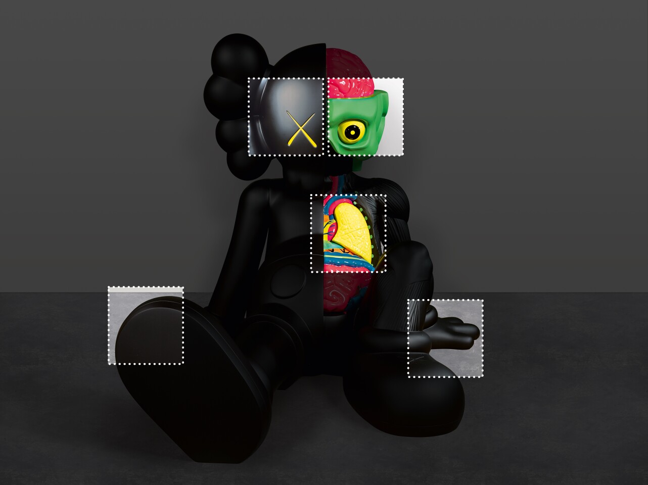 There is something unsettlingly resonant about KAWS’s work. The Brooklyn-based artist, also known as Brian Donnelly, has become one of the most highly acclaimed heirs of Pop art. Following the legacy of the movement’s founding father, Andy Warhol, he infiltrates the realm of consumerist culture and mass commodity. But he takes it a step further, examining the psychology of contemporary society through images of sinister cartoon characters, melting faces and dissected bodies that blur the lines between contemporary art and commercial retail. COMPANION (RESTING PLACE), 2013, encapsulates the very best of KAWS’s pervasive oeuvre, transposing the well-known character Mickey Mouse into a 21st-century context.