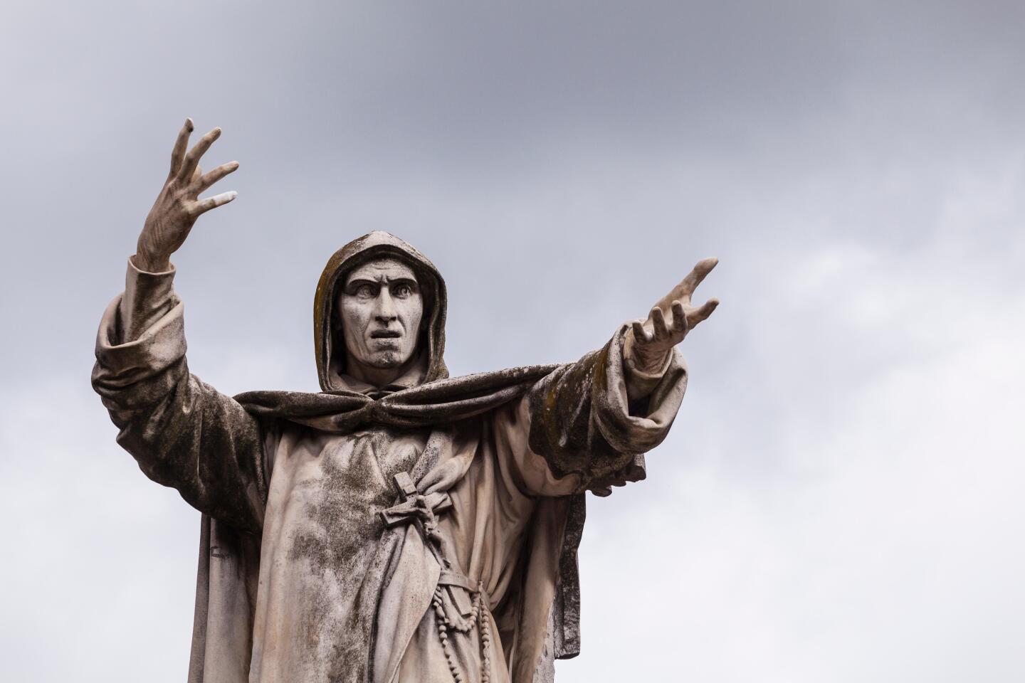Torton recalls: “I’ve wondered if this painting isn’t a portrait of Savonarola. It was Savonarola who was truly versus the Medici.” Indeed, the striking pose of the present figure is remarkably similar to that of the famed statue of Savonarola that towers over Piazza Savonarola in Florence, as is the searing gaze.