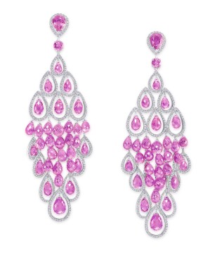 格拉夫 | 粉紅色剛玉配鑽石吊耳環一對