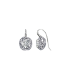 耳環中央各鑲一顆古墊形H-I色鑽石,VS1淨度,兩顆主石共重10.11卡拉,鉑金鑲嵌,密鑲鑽石共重1.46卡拉。