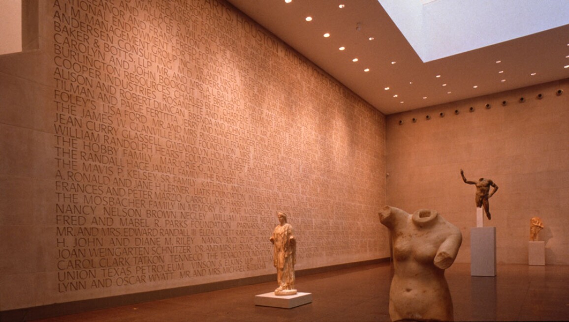 於1900年創辦的休斯頓美術館是本地最大的文化機構。館藏六萬四千餘件藝術品,博古通今,東西交融。館藏大部分作品為意大利文藝復興期間繪畫、法國印象派繪畫、攝影、美國及歐洲裝飾藝術、非洲及前哥倫布時期黃金製品、美洲藝術、戰後歐洲及美洲繪畫及雕塑等。近年來,美術館更添德克薩斯繪畫作為另一收藏重點,並舉辦一系列特展。美術館還不斷擴大現當代拉丁美洲藝術、亞洲藝術及伊斯蘭藝術等收藏。兩個重要當代藝術收藏亮點為莉莉與休•羅伊•卡倫雕塑公園,和詹姆斯•特瑞爾代表性裝置作品《奇光幻影》(1999年作)。